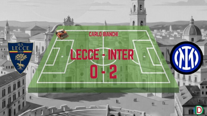 Finisce la prima parte con la seconda che inizia bene per l’Inter con il gol di Dimarco su cross di Thuram ma annullato dal VAR per un fuorigioco millimetrico del francese. La partita non si sblocca, il Lecce però non offende, tiene fino al vantaggio interista su un calcio d’angolo di Dimarco e rete di Mkhitaryan appena subentrato. Il raddoppio sempre su calcio d’angolo del solito Dimarco (il quindicesimo gol nerazzurro dalla bandierina) e colpo di testa di Akanji anche lui subentrato al posto dell’ammonito De Vrij. Fra i due gol Tiago Gabriel assieme a Falcone salva una doppia occasione con Dimarco ancora protagonista su una ripartenza interista da cinque contro tre. Sul finire Bastoni si fa furbescamente ammonire per evitare il Genoa ma non il derby. Inter temporaneamente a +10 sul Milan ma già con la testa rivolta al turno di Champions.