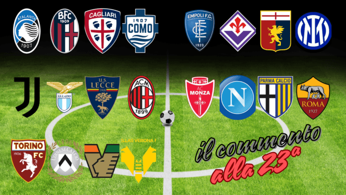 Minuto 92 e mezzo (tra il 92 e il 93)! Questo è certamente il titolo di questa emozionante ventitreesima giornata, ma potrebbe esserlo anche dell’intero campionato. Al 93°, De Vrij segna la rete che rende parziale giustizia all’Inter, regalandole il pareggio. Quasi tre ore dopo, al 92°, Angelino ferma la fuga del Napoli di Conte all’Olimpico: tutto resta come prima, ma con una giornata in meno da disputare.