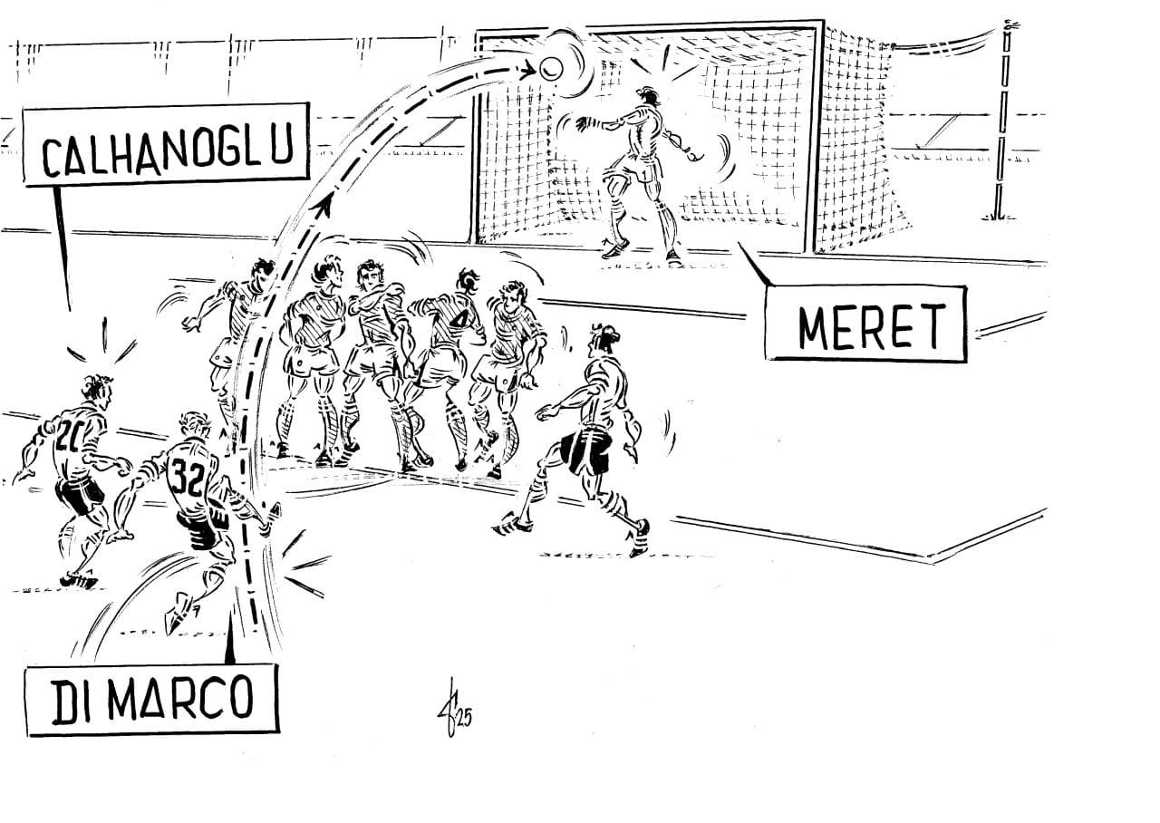 Napoli-Inter 1-1: la vignetta nel ventitisettesimo turno, è dedicata alla perla di Federico Dimarco su punizione, che non dà nessun scampo ad Alex Meret al Maradona e che apre le danze nel big-match del Maradona.