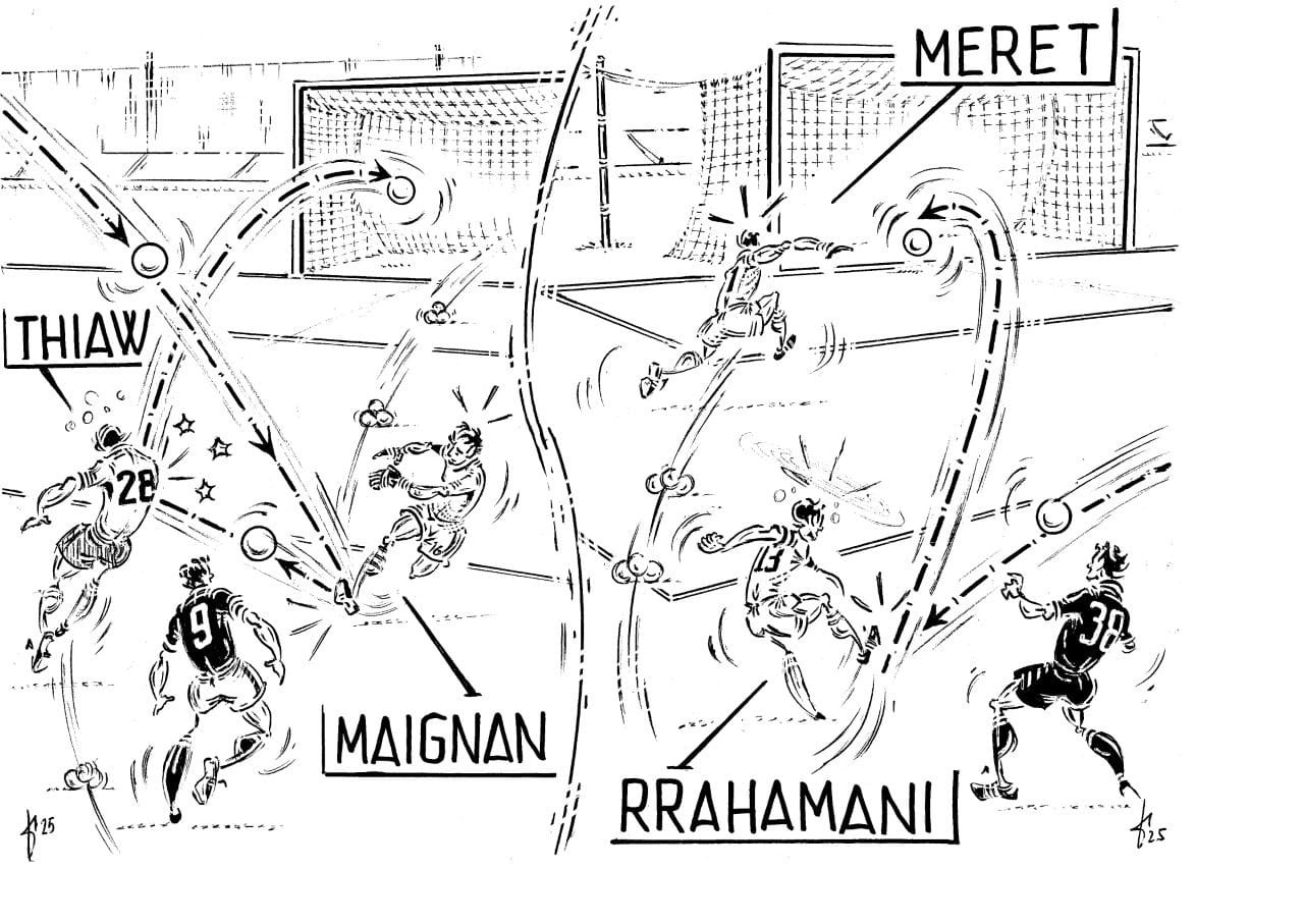 Allo Stadio Sinigaglia, l’azzurro Rrahamani riceve una palla innocua e da fuori area credendo di fare un retro passaggio al portiere, indirizza maldestramente il pallone nella propria porta, con Meret che invece avanzava sulla destra, lasciandola sguarnita.