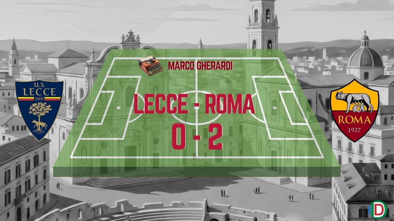 Una Roma in assoluta emergenza difensiva si presenta a Lecce con l’obbligato terzetto arretrato Ghilardi-Ziolkowski-Celik e senza Soulé dal primo minuto per la seconda volta in stagione, con l’avanzamento di Cristante e Pisilli in coppia con Koné a centrocampo. La scelta ripaga Gasperini e dopo un quarto d’ora la Roma è già in vantaggio: Dybala con una magia serve Ferguson che segna il secondo gol nelle ultime tre partite. A seguito di un gol annullato per fuorigioco a Pisilli, è ancora l’irlandese ad avere un’opportunità con un tiro in area di rigore parato da Falcone con un grande intervento che tiene in partita il Lecce.